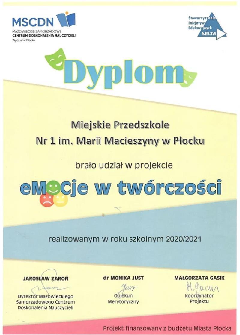 - "Twórczy chłopcy i dziewczynki z płockiej jedynki" - program wspierania i rozwijania u dzieci uzdolnień twórczych;