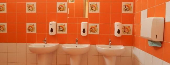 Przy każdej sali znajduje się łazienka z sanitariatami dostosowanymi do wieku i wzrostu dzieci.