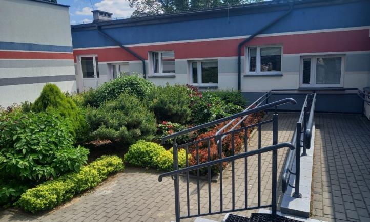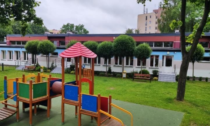 Otoczony rozległym terenem zielonym z placem zabaw wyposażonym w nowoczesny, kolorowy i funkcjonalny sprzęt terenowy dostosowany do możliwości fizycznych dzieci w wieku przedszkolnym zachęca do użytkowania.