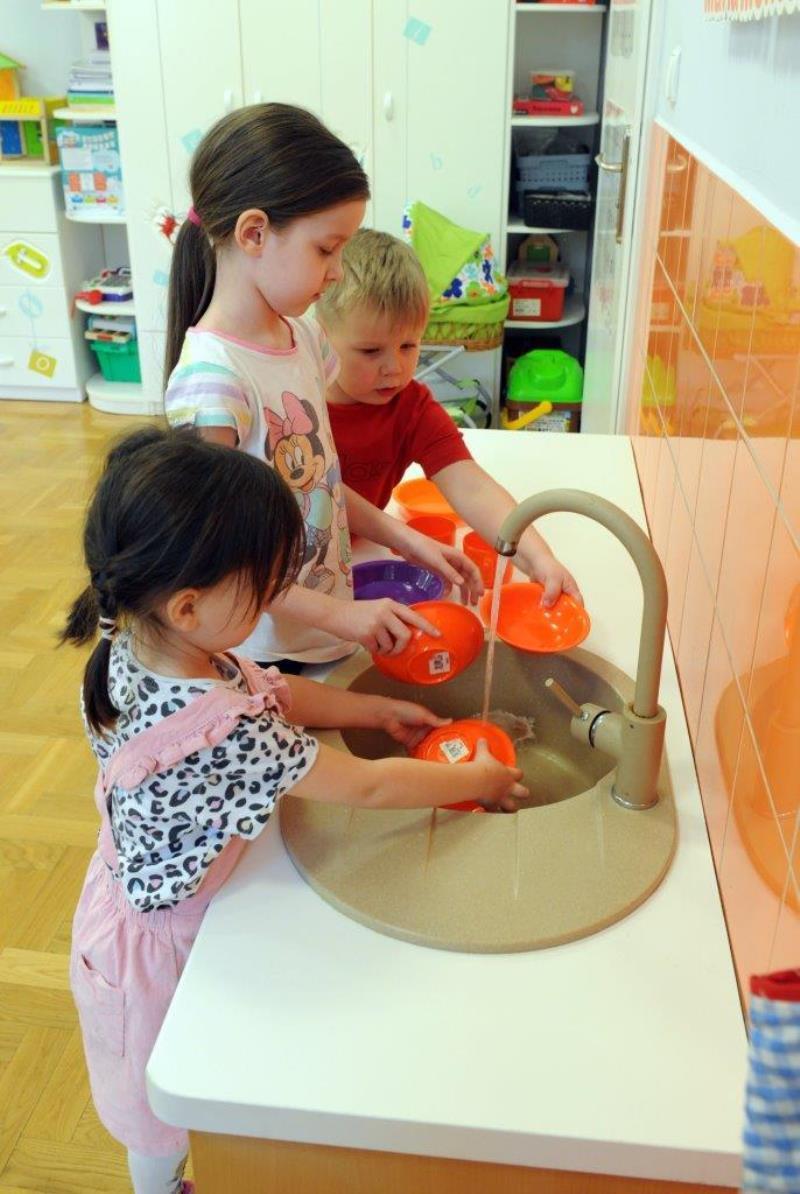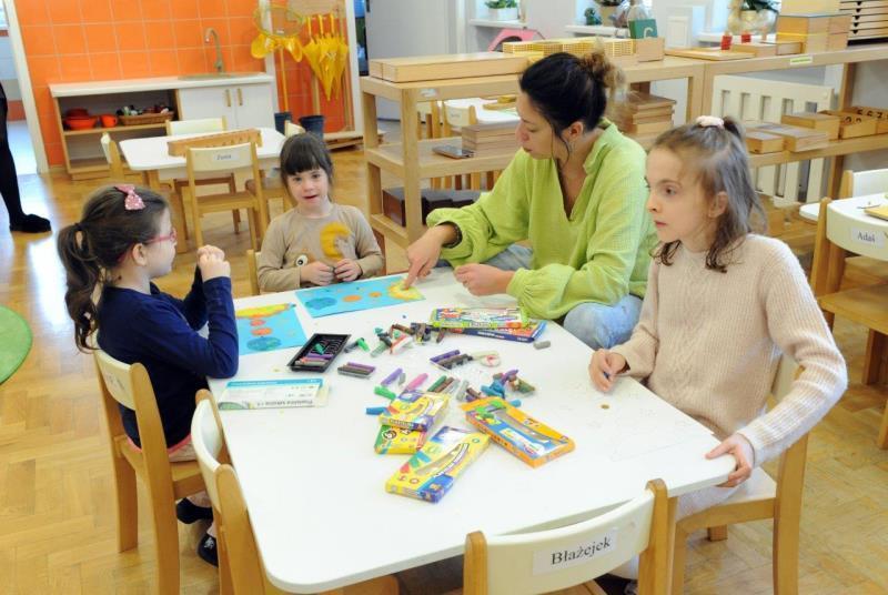 Do czterech oddziałów przedszkolnych przyjmowane są dzieci w zbliżonym wieku, natomiast jeden oddział przedszkolny urządzony i prowadzony jest zgodnie z zasadami pedagogiki i Marii Montessori dla dzieci 4, 5, 6 -letnich. Jest to jedyny oddział Montessori organizowany w płockich placówkach publicznych. Równolegle w tym oddziale z programem wychowania przedszkolnego realizowany jest program "Odkryjmy Montessori raz jeszcze". Nauczycielki tego oddziały poza kwalifikacjami z wychowania przedszkolnego są certyfikowanymi nauczycielkami Montessori.