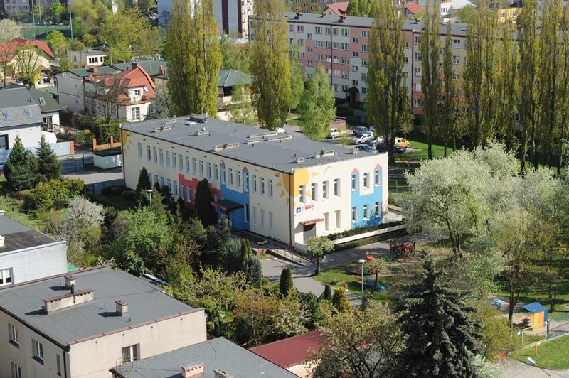- Przedszkole znajduje się w centrum osiedla "Dworcowa" w jednopiętrowym, murowanym budynku otoczonym zielenią, usytuowanym daleko od ruchliwych ulic. Do budynku przylega nowoczesny, bezpieczny plac zabaw, którego integralną częścią jest miasteczko ruchu drogowego z zapleczem rowerowym. Tuż obok jest boisko do zespołowych gier sportowych. Budynek jest monitorowany, dodatkowo zabezpieczony domofonem.